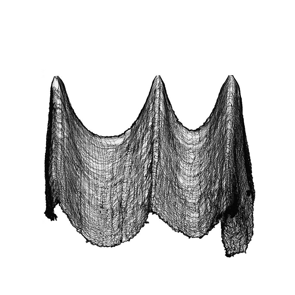 Černá síťovaná látka dobře poslouží jako dekorace místnosti pro strašidelnou oslavu i jako doplněk karnevalového kostýmu.