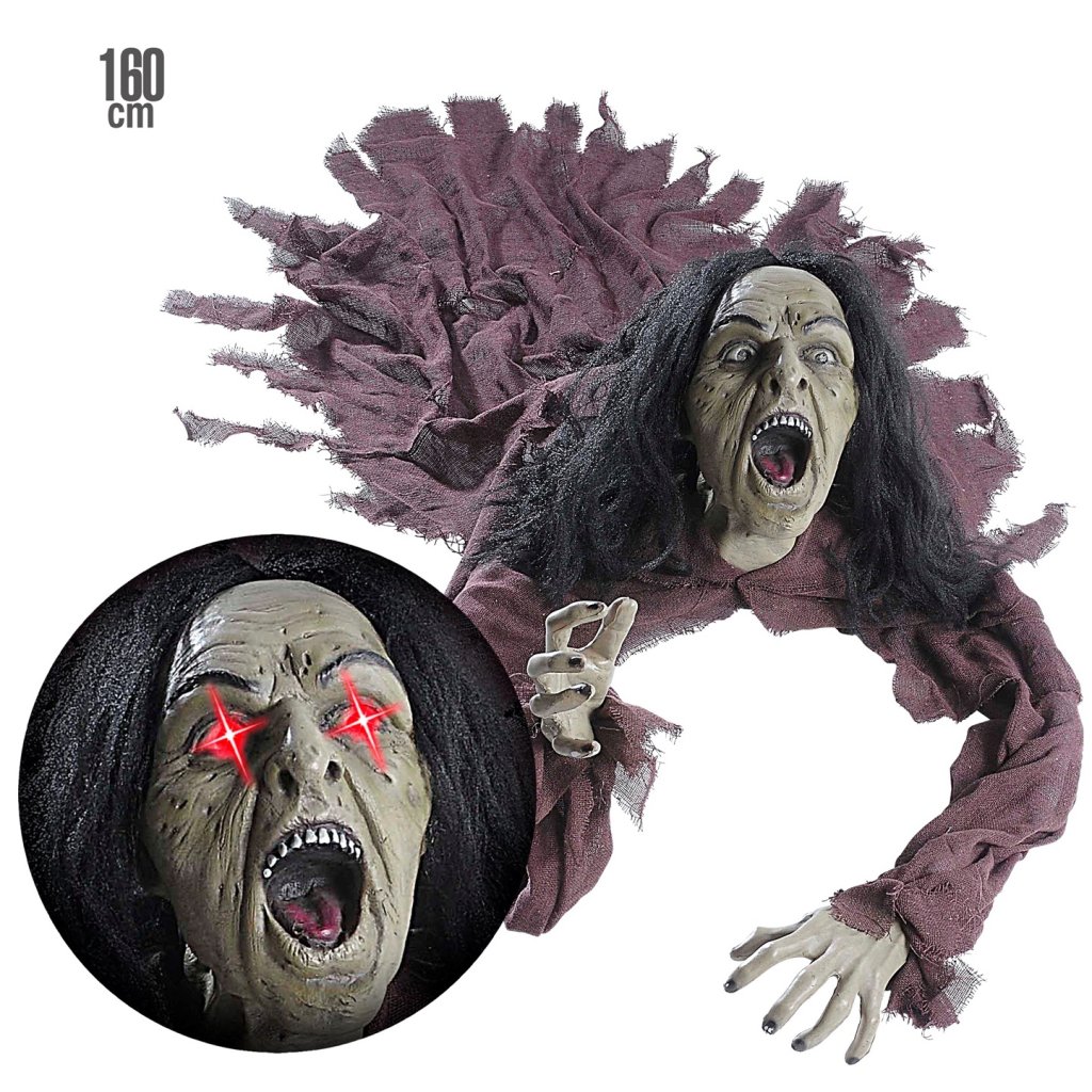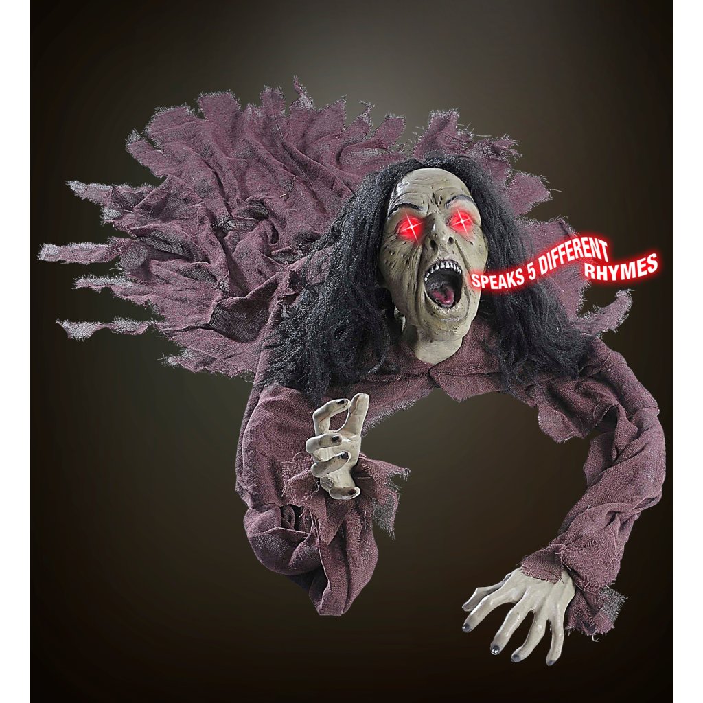 Děsivá čarodějnice vydává pět různých zvuků, které naženou všem husí kůži. K umocnění dojmů jí blikají červeně oči.