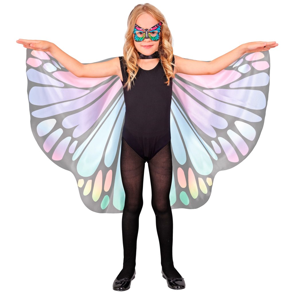 Barevná motýlí křídla doladí také duhová škraboška a umožní vašemu dítěti zazářit na karnevalu, dětském Halloweenu, oslavě narozenin. Křídla určitě využije malá slečna ale také na hraní na doma.