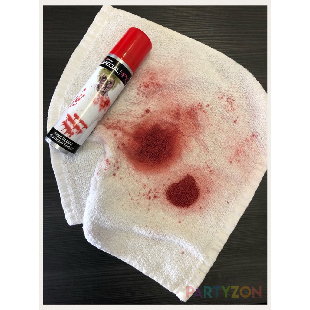 Manipulace je jednoduchá, stačí sprej otevřít a nastříkat. Vzdálenost spreje od látky vám vytvoří různé skvrny. Zblízka vám to udělá velice hustý dojem čerstvé krve a naopak, když sprej oddálíte vytvoří to dojem starší a zaschlé krve.