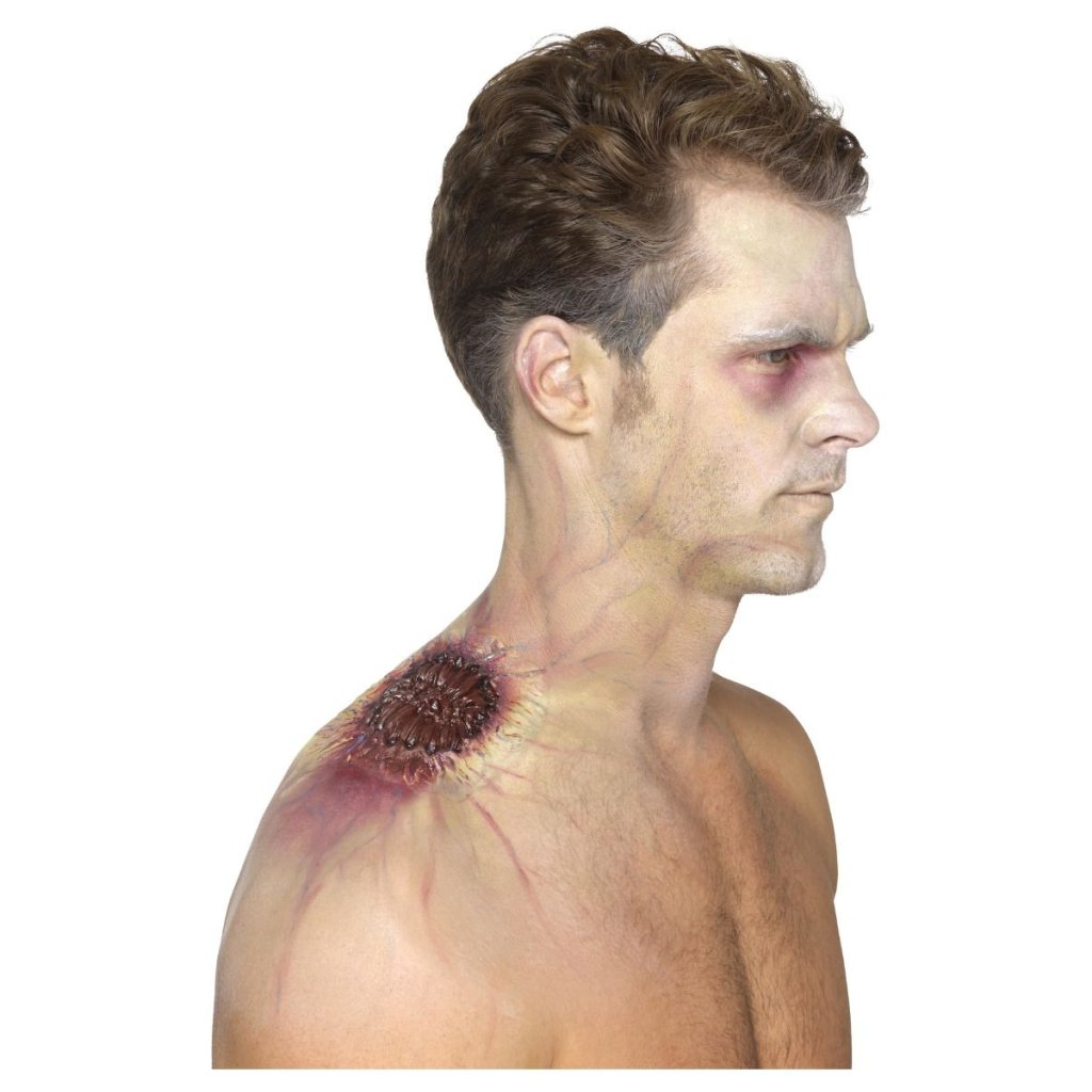 FX zranění zombie infikované kousnutí je to, co na sobě budete muset mít, aby bylo jasné, proč se z vás stal tvor toužící po mozkách ostatních. Využijete ho na Halloween ke kostýmu zombie. Aby mohlo zranění působit autenticky, doplňte ho například falešnou krví. Zranění se použitá také při cvičných záchranářských akcích, jako je třeba akce, kterou pořádá Červený kříž pro děti.