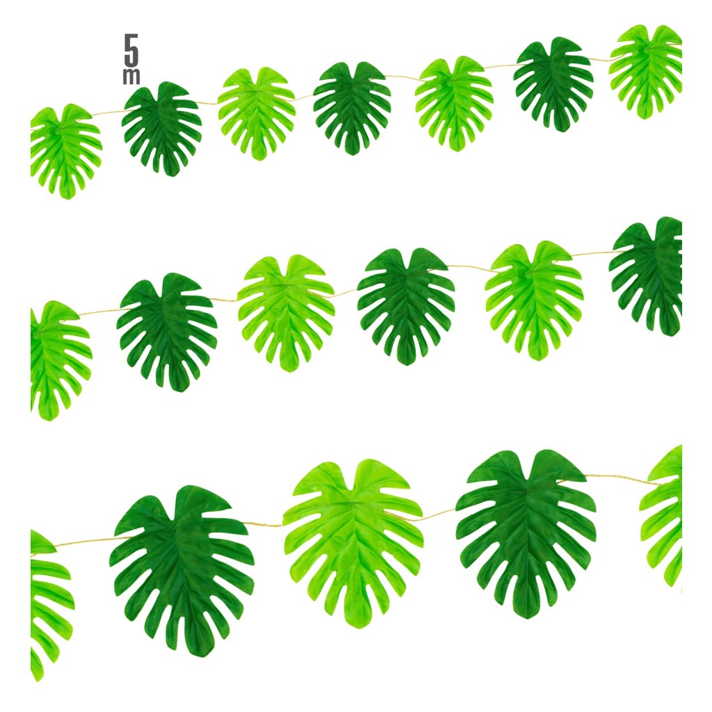 Havajská girlanda s tropickými listy tematicky vyzdobí prostředí hula hula párty.