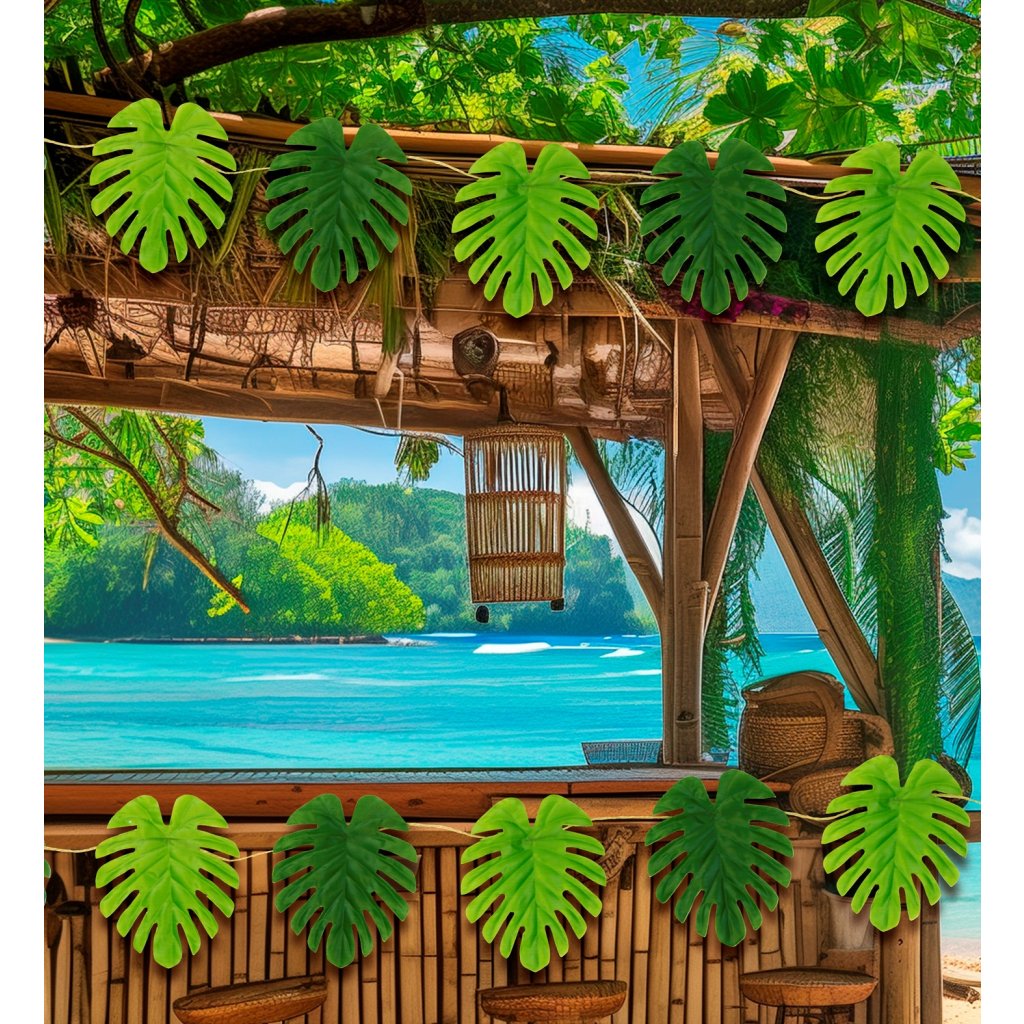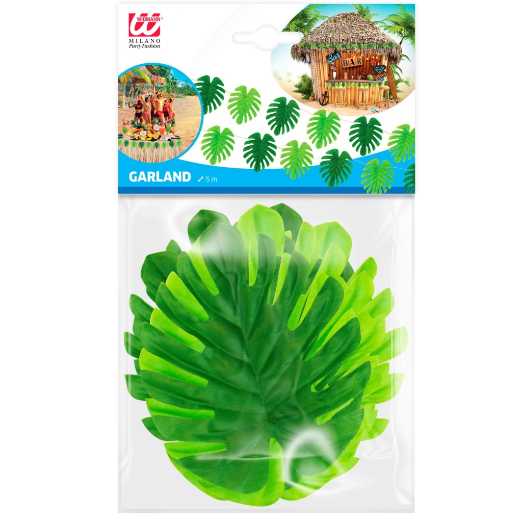 Havajská girlanda s tropickými listy tematicky vyzdobí prostředí hula hula párty.