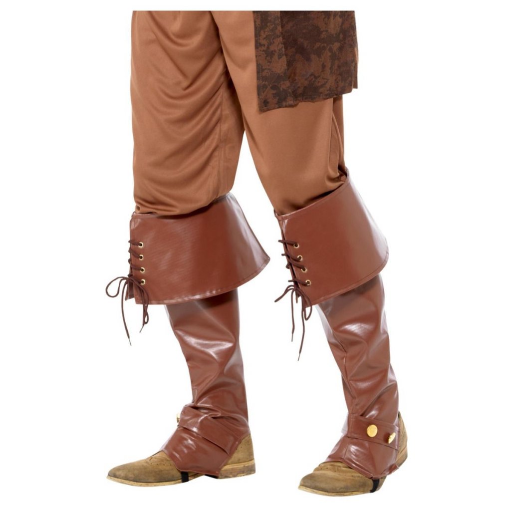 Hnědé pirátské návleky stačí navléknout na vaše boty. Materiál imituje kůži.