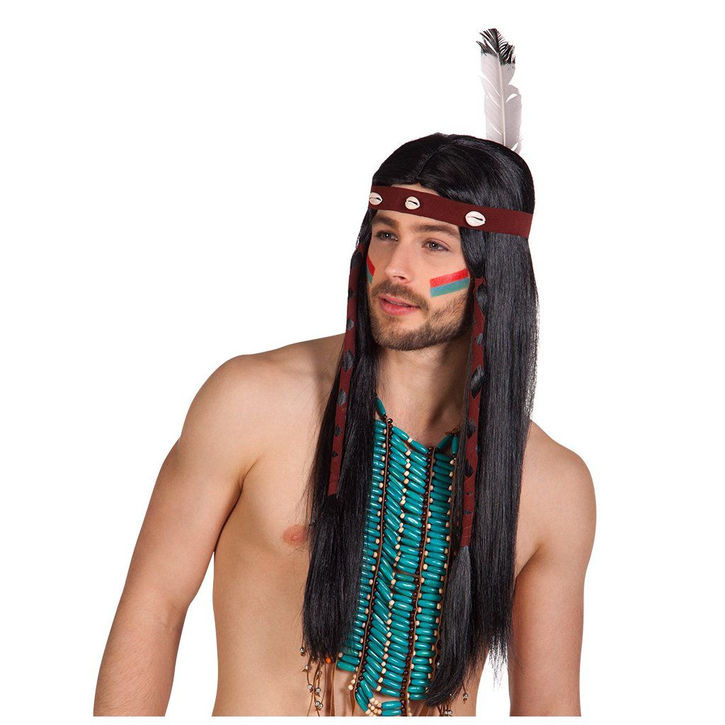 Indiánská paruka s čelenkou vám vytvoří správný vzhled apače, který se zkrátka bez dlouhých vlasů neobjede. Jako rudoch budete hvězdou kostýmové párty.