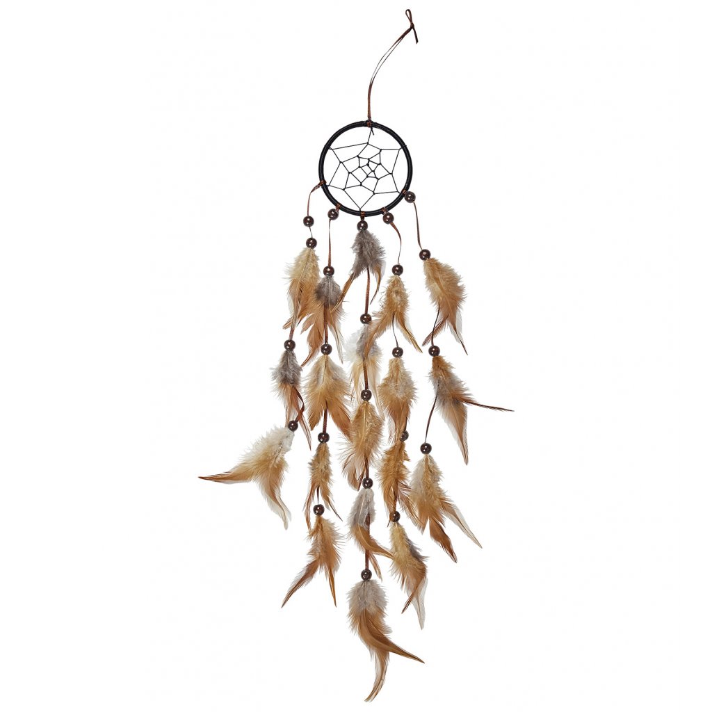 - lapač snů zdobený peříčky a korálky