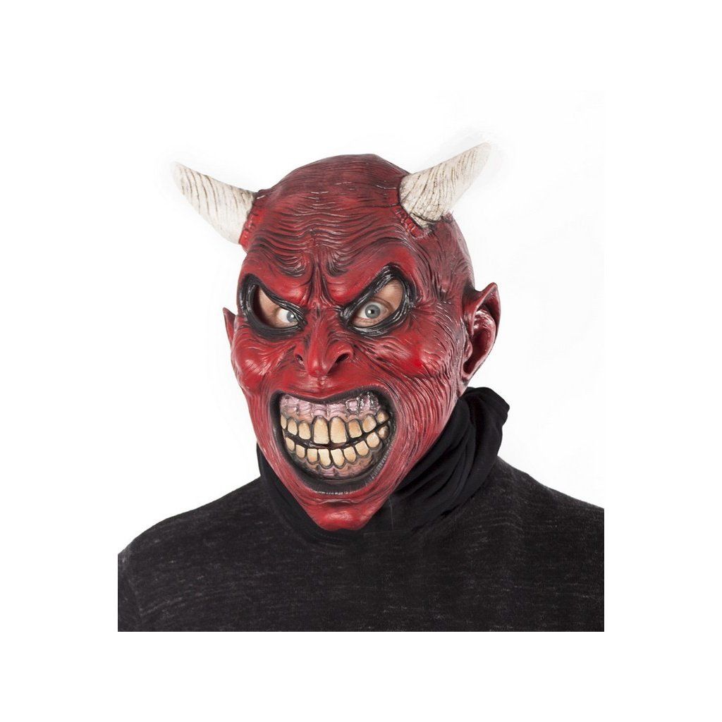 Latexová maska ďábla je ideální k vystrašení hříšníků. Je navíc velice pohodlná díky velkým otvorům na oči. Nemusíte se bát o vzduch, protože v masce je i otvor na dýchání (nos i ústa). K masce jsou přidělané i dva menší rohy, které dodají vašemu vzhledu víc čertosti.