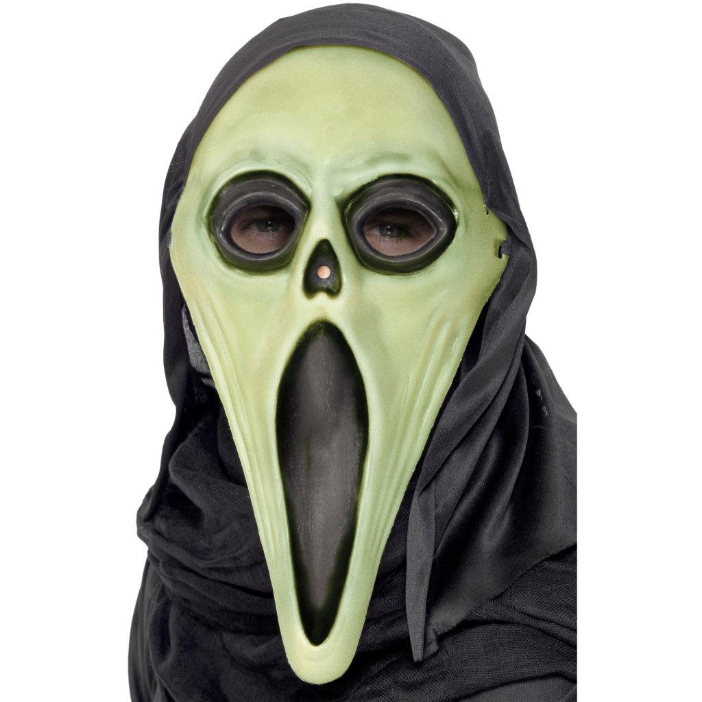 Nasaďte si na Halloween, filmový večírek či hororovou párty ikonickou masku s kapucí Vřískot, ocitněte se uprostřed temnoty a vyvolejte všeobecný děs a úzkost ve všech přítomných. Nezapomeňte ale, že se v temnotě neschováte, protože maska svítí ve tmě.