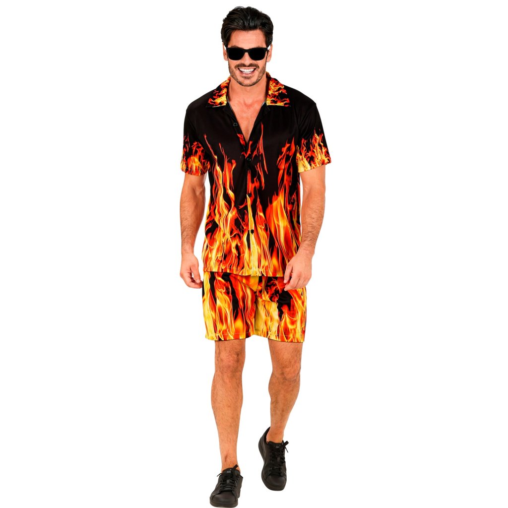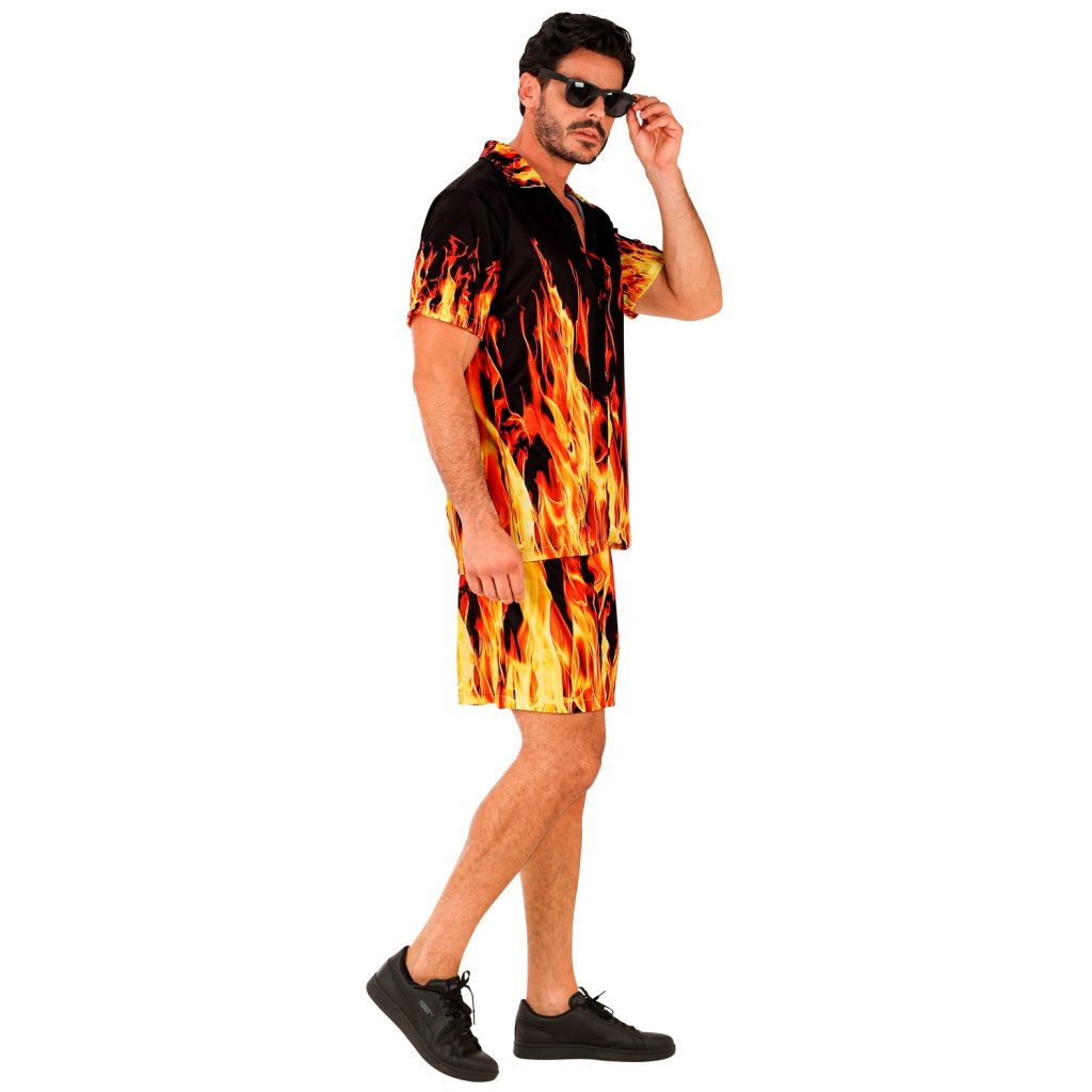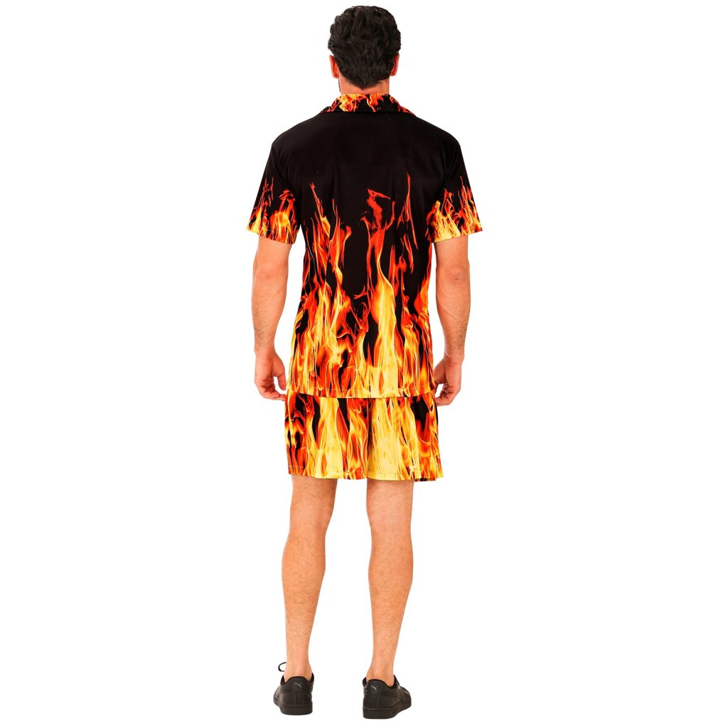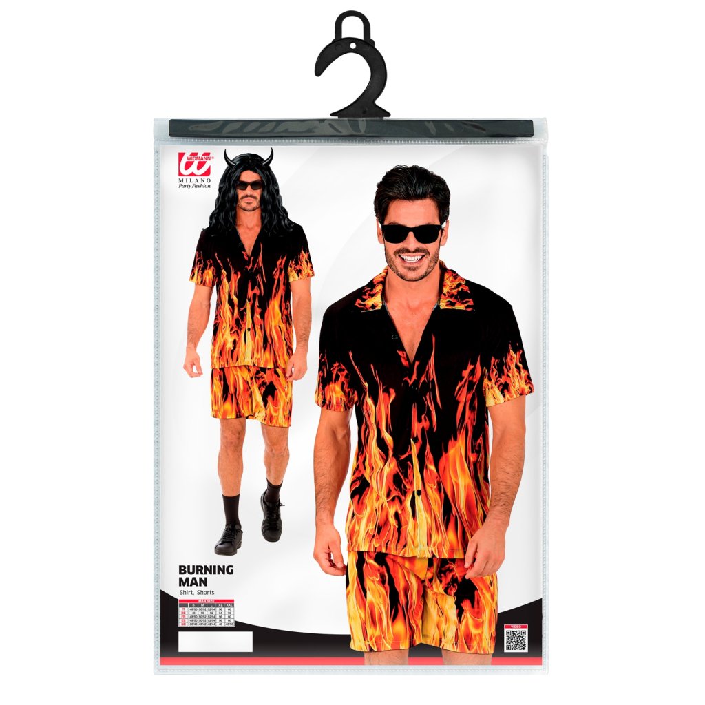 Pořiďte si originální kostým, který zaujme každého. Tento set obsahuje černou košili a kraťasy. Oboje zdobí potisk plamenů, díky kterým získáte opravdu netradiční převlek.