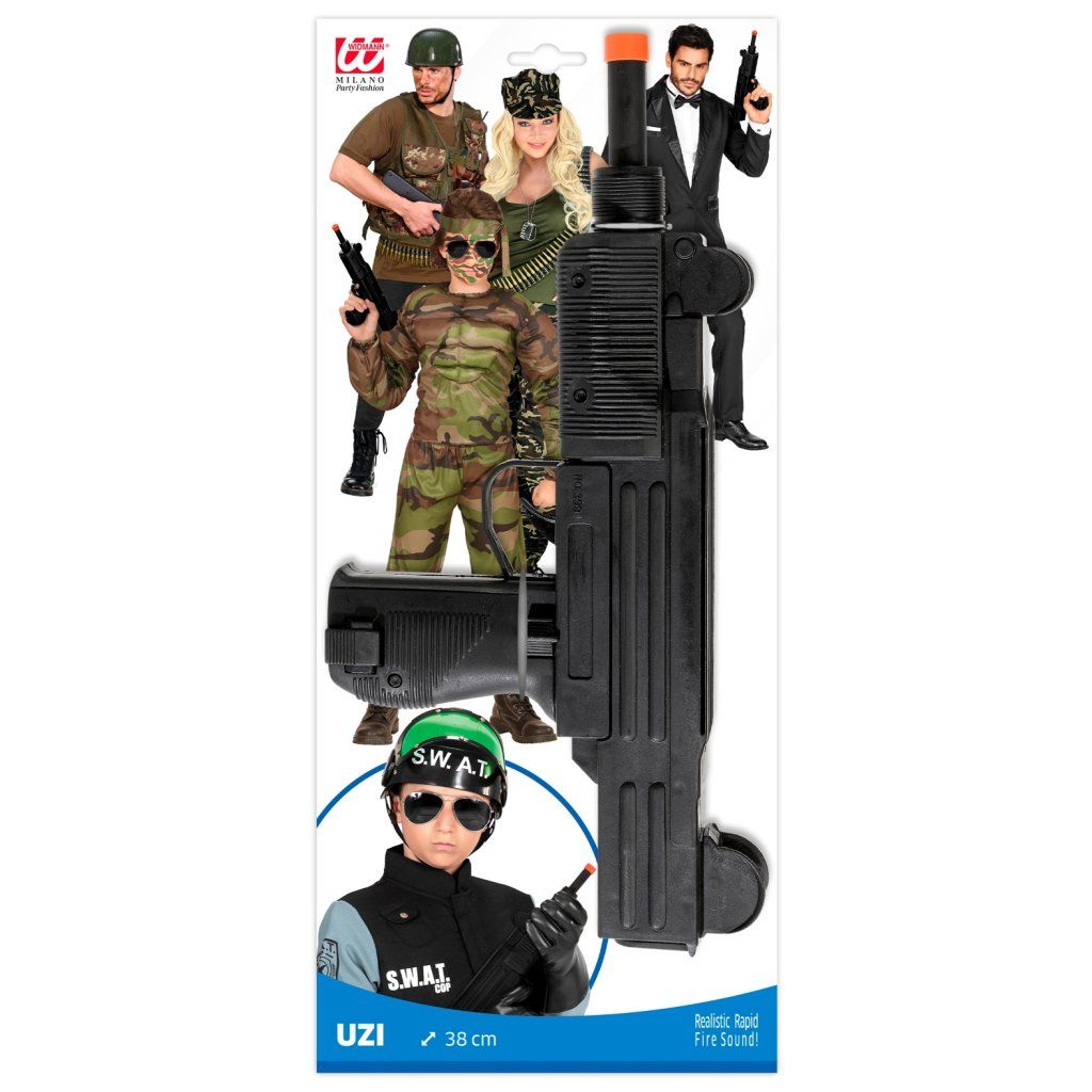 Plastový samopal je skvělý doplněk pro kostým policisty, ale také mafiána, který touží mezi ostatními působit na první pohled neohroženě. Samopal vydává zvuky, takže jeho funkce vám dodá na věrohodnosti.