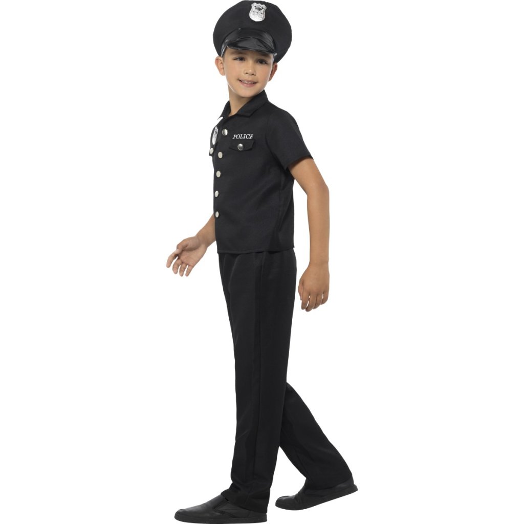 Karnevalový kostým obsahuje černou košili s krátkými rukávy, kalhoty a policejní čepici s odznakem. Převlek můžete ještě doplnit o policejní pouta a pistoli.