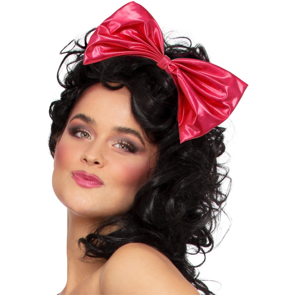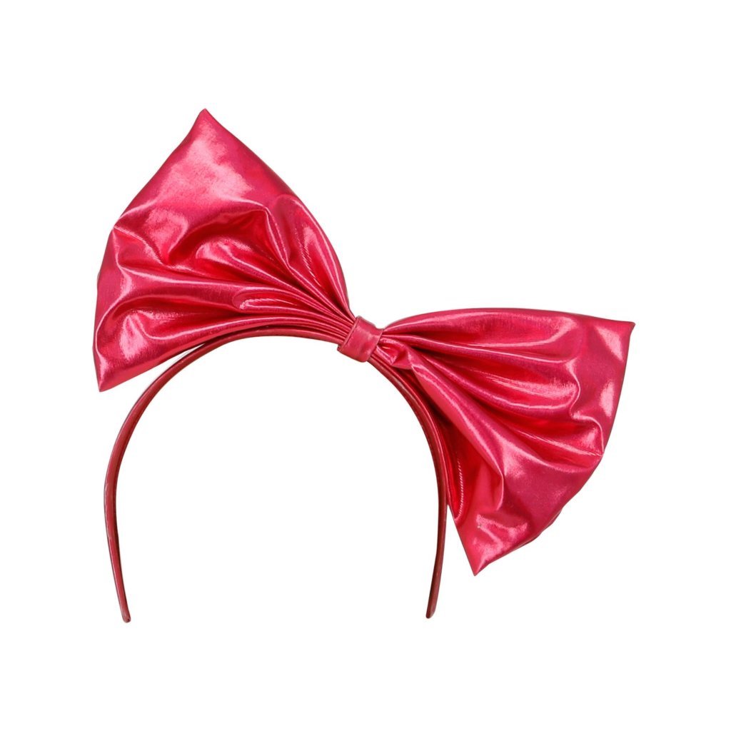 Metalická růžová čelenka s mašlí ozdobí váš účes a zároveň doladí celý outfit na retro večírek ve stylu 80.let.
