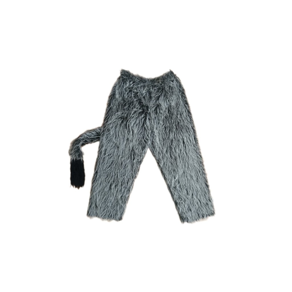 Kalhoty jsou z šedého hřejivého plyše, takže vám nebude zima. Mají pružný pas s gumou a na zadní části kalhot je napevno přidělaný čertovský ocas.