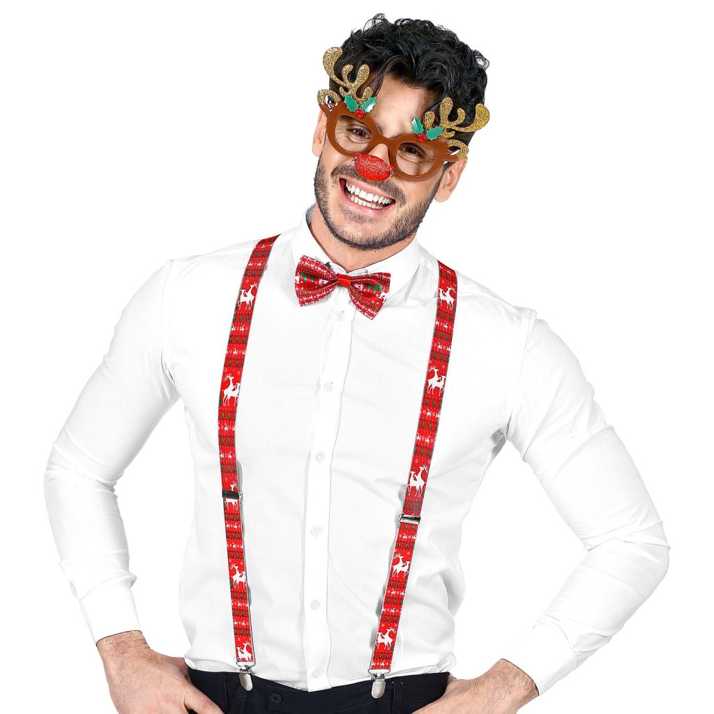 Sada není nikterak náročná na obléknutí. Stačí nasadit brýle s růžky a čumáčkem na řetízku připevněným k brýlím. Brýle jsou plastové a jsou zdobené zlatým glitrem. Motýlek je červený s vánočními motivy. Je na gumičce, kterou snadno přetáhnete přes hlavu. Kšandy jsou ve stejném designu jako motýlek a mají klasické "kšandovské" zapínání.