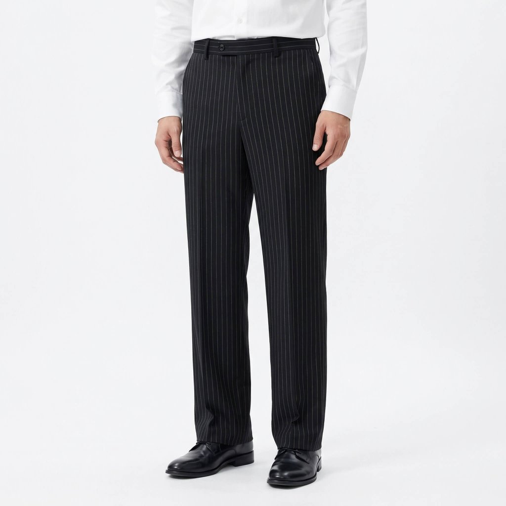 Elegantní černé kalhoty s nenápadným proužkem skvěle doplní kostým mafiána z 20. let.