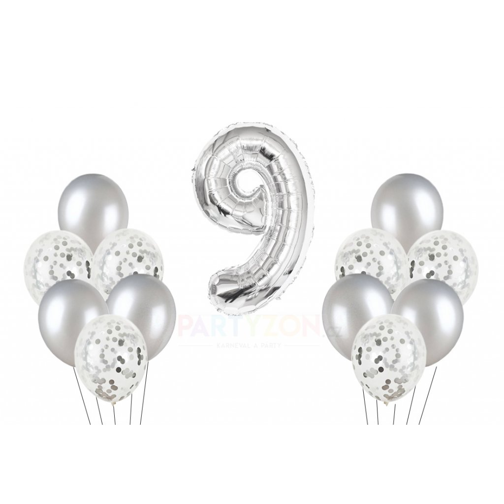 Stříbrný set balónky a foliový balónek číslo 9