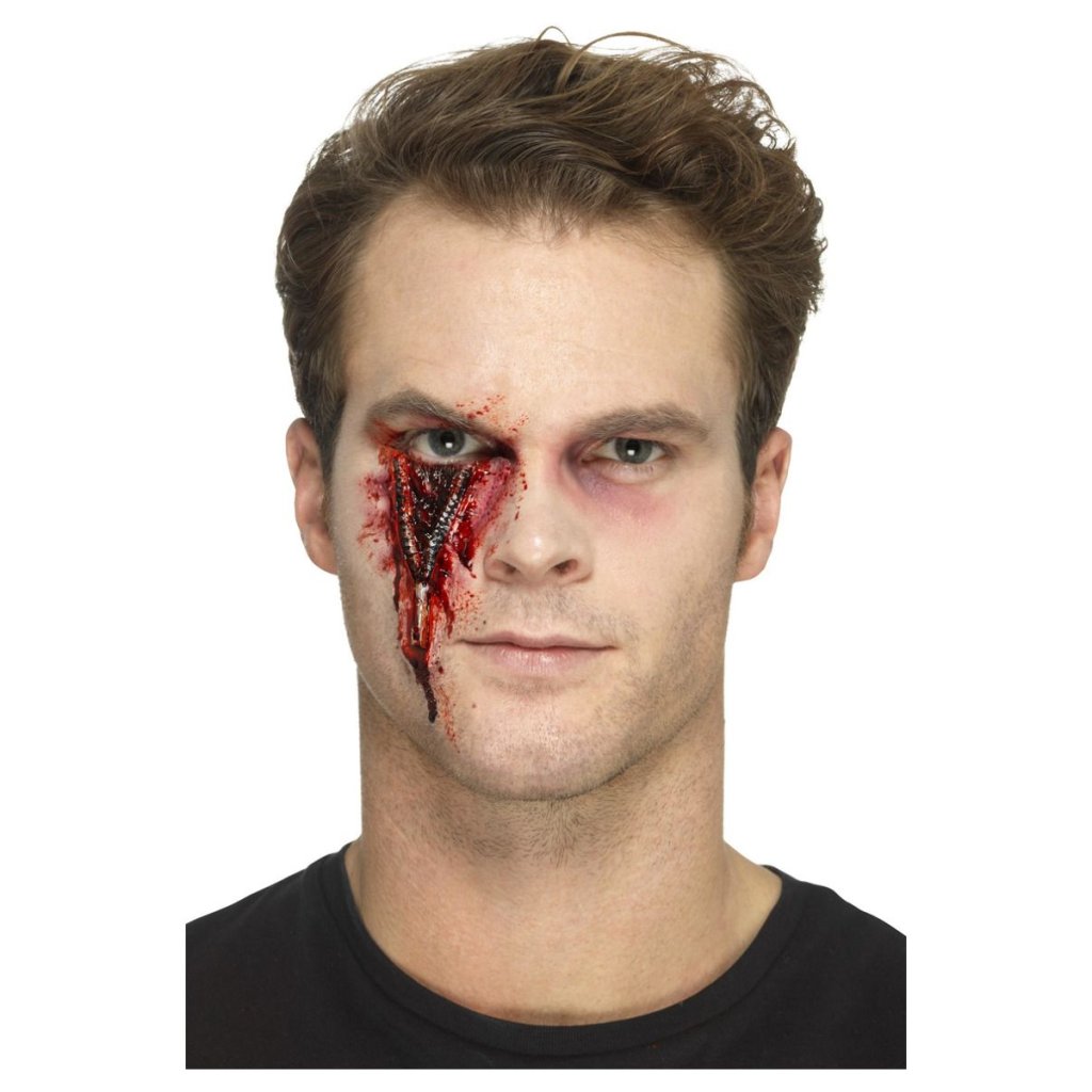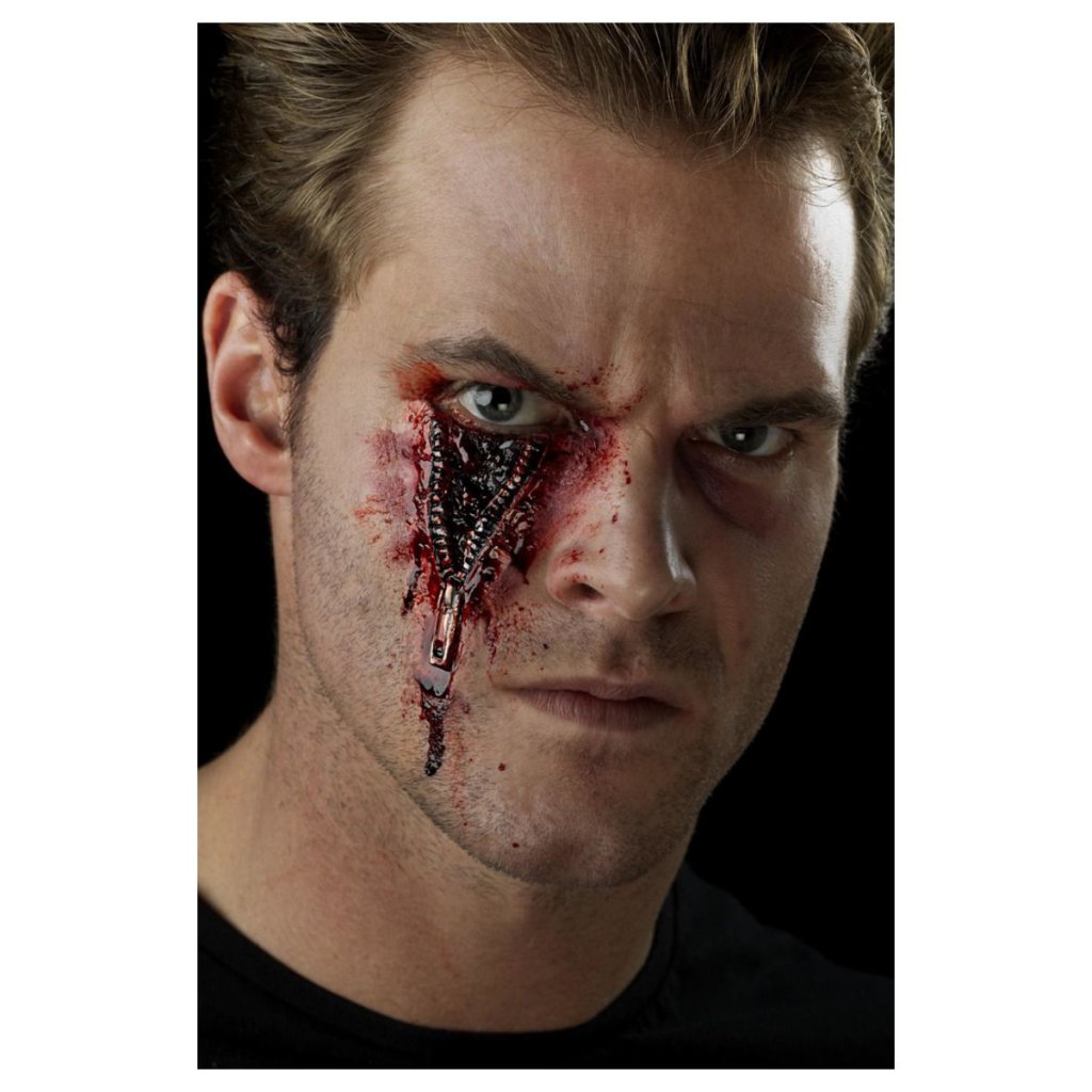 Halloween je čas, kdy to děsivé může na povrch. Pokud se nebojíte žádných zombie můžete se stát jedním z nich. Spousta lidí tráví dlouhé hodiny přípravou jizev a umělého zranění. Necítíte se na to? Nevadí! Umělá jizva se zipem už je hotový výrobek, který jenoduše lepidlem přilepíte ke své kůži a jen lehce, podle potřeby, domalujete.